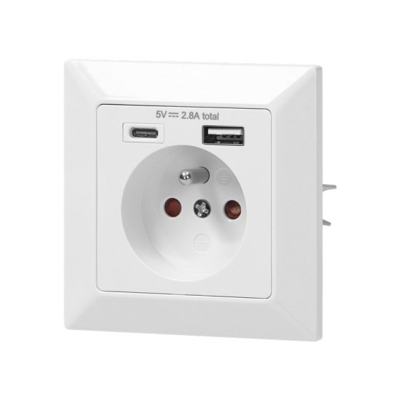 GNIAZDO POJEDYNCZE 2P+Z USB-A + USB-C WYJŚCIE ORNO