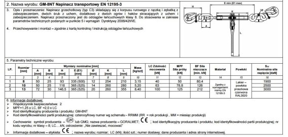 jest jedynie komponentem służącym do budowy odciągów łańcuchowych i nie posiada tabliczki znamionowej