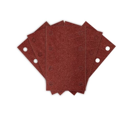Papiery ścierne na rzep, prostokąt 80 x 130 mm, P120, 5 sztuk, z 8 otworami do 04-623, 54-051 NEO TOOLS to akcesorium przeznaczone do precyzyjnego szlifowania drewna, metalu, tworzywa sztucznego i płyt kartonowo-gipsowych. Dzięki wymiarom 130 x 80 mm oraz 8 otworom zapewnia efektywne odprowadzanie pyłu, co poprawia komfort pracy i wydłuża żywotność papieru. System mocowania na rzep umożliwia szybkie oraz wygodne zamocowanie na dedykowanej szlifierce oscylacyjnej 04-623 NEO TOOLS.