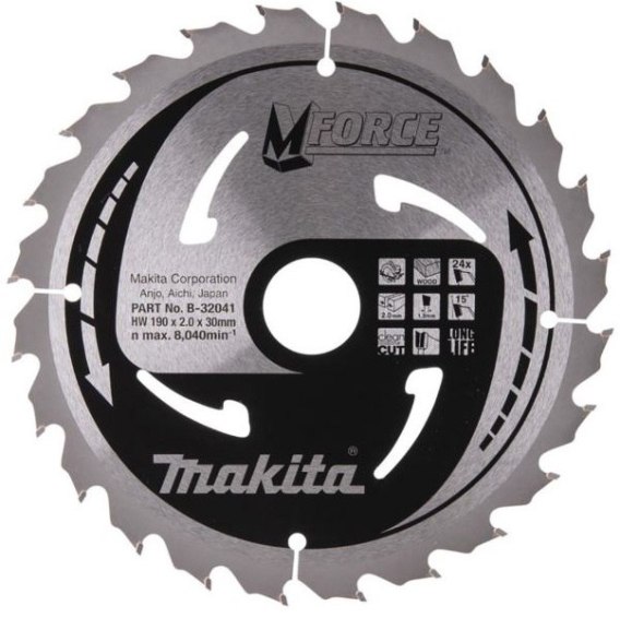 Tarcza pilarska przeznaczona do pilarek ręcznych i stacjonarnych o wymiarach tarczy 190x30mm. Tarcza jest wykonana w technologii MFORCE, innowacyjny kształt zęba tnącego wpływa na szybkość i jakość cięcia. Rewolucyjnie zaawansowany kształt zęba wyznaczający nowy kierunek w technologii produkcji tarcz tnących. Większy obszar ścierania i więcej powierzchni tnących daje do 2 razy dłuższą żywotność w porównaniu do tradycyjnych tarcz tnących. Wąski rzaz i cienka blacha tarczy redukują tarcie i pozwalają na użycie mniejszej siły posuwu oszczędzając silnik pilarki.